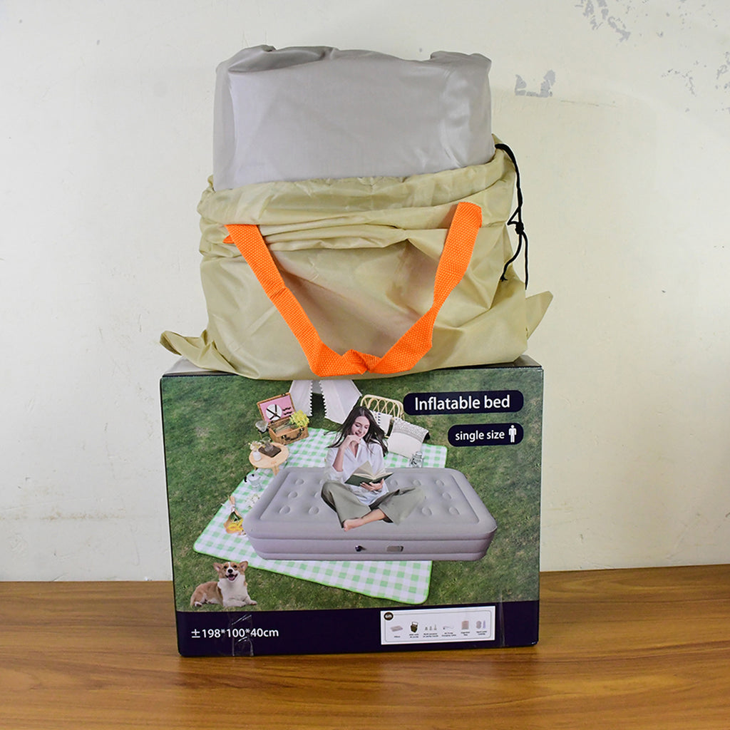 Portable Inflatable Bed Folding Lazy Bed Collapsible Three-layer Airbag Strong Pressure Resistance For Travel Or Home Use, Air Mattress Plush Top Surface Blow Up Bed for Home & Camping (190x100x40 Cm / 1 Pc)