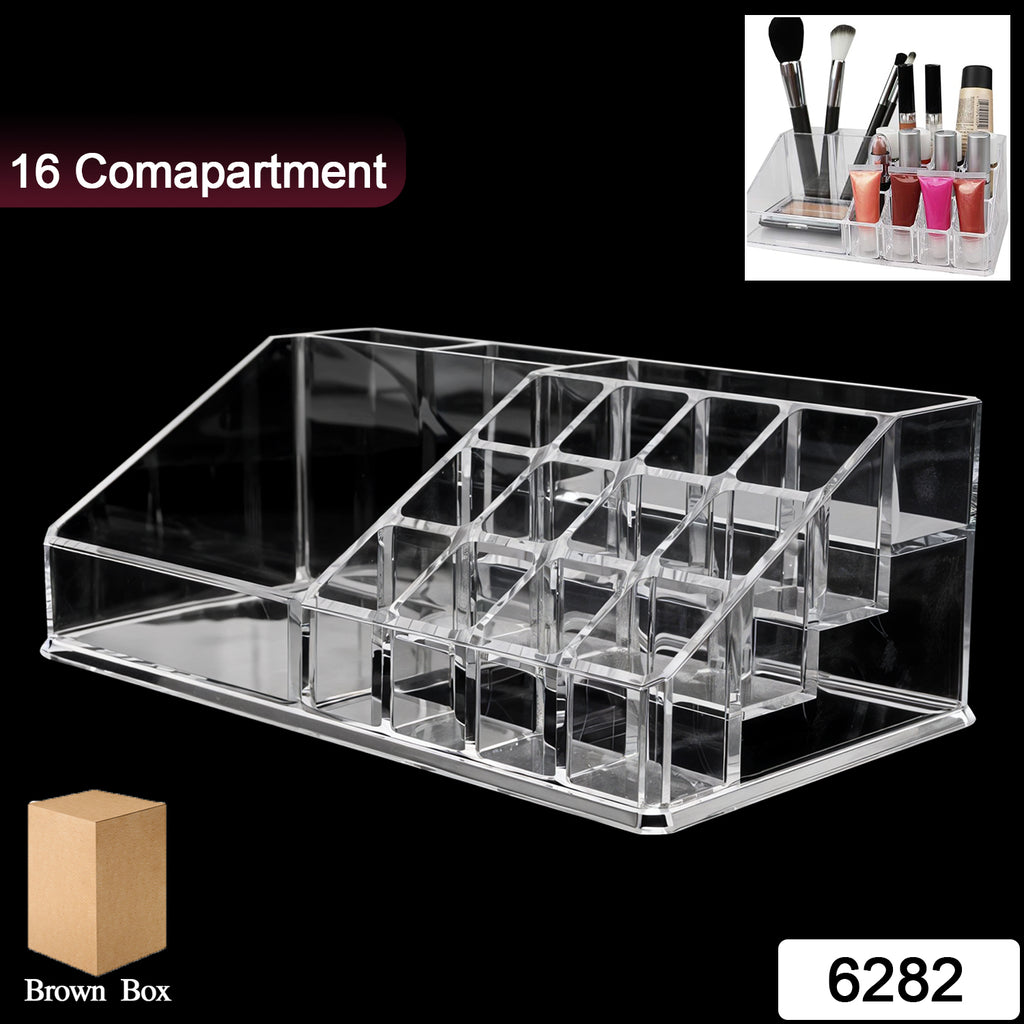 6282 16 Compartment Cosmetic Makeup Jewellery Lipstick Storage Organiser Box, Cosmetic Storage Box Make-up Lipstick Organizer / Lipstick Holder Case  Transparent